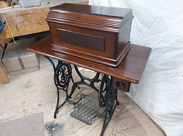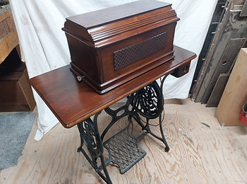 Staining and French Polishing: Finally, we applied the artistry of staining and French polishing to all repairs, infusing the sewing machine with a renewed radiance.
